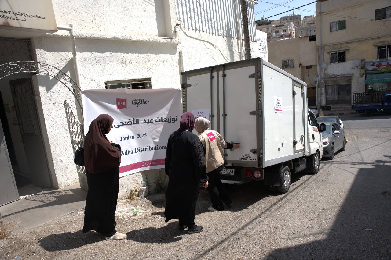 As part of its seasonal programs to support needy families, the association participated in the sacrificial meat distribution campaign implemented by the United Mission for Relief and Development (UMR) in Al-Hussein Camp and the city of Irbid.