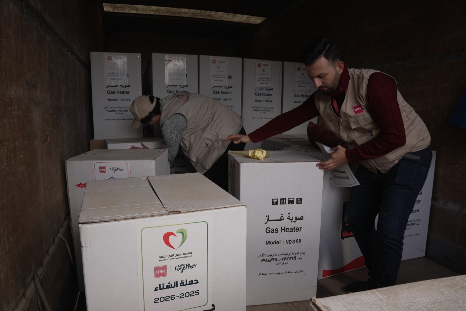 As part of the ongoing Warm Winter Campaign and in partnership with the United Mission for Relief and Development, Sherian Al-Khair Charity Association visited Al-Ain Al-Bayda village in Tafila Governorate , distributing gas cylinders along with heaters to provide effective warming solutions for families in need .